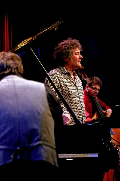 In het Bimhuis gaf Eric Vloeimans een concert met pianotrio Minsarah, met daarin slagwerker Ziv Ravitz en pianist Florian Weber.