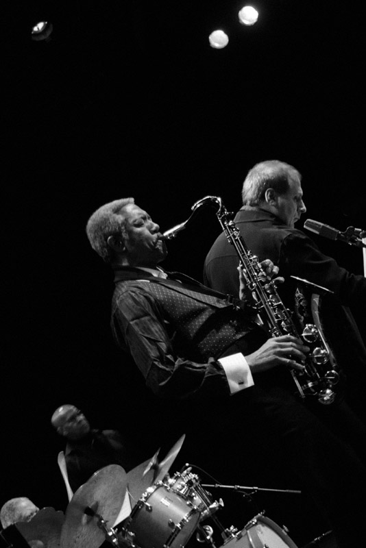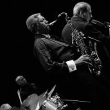 En ook ritmisch blinkt de band uit in grappigheden. Een thema dat net wat vertraagd wordt of de drummer die plots een vierkwartsmaat in drieën mept. Oppeppend zijn de overgangen tussen solo’s waarin losjes een eerder gehoord fragment wordt geblazen vanuit de zijkant. Billy Hart heet de slagwerker, ooit begeleider van Wes Montgomery, Miles Davis en ook Otis Redding. Hij is werkelijk een beest op vooral de cymbalen, keert ritmes zonder moeite om en vergeet na een indrukwekkende solo van een minuut of tien, dat hij niet alleen op het podium staat. Zie het niet als arrogantie, meer als complete toewijding. Zijn ingespannen gezichtsuitdrukking lijkt dit te verraden.