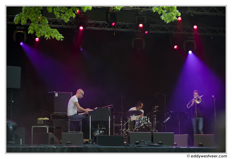 Qua stijl en genre was het soms flink schakelen voor de bezoekers. Nu-bopper Joris Posthumus zat met zijn kwartet ingeklemd tussen de zware grooves van Öström en de Zen-funk van Ronin. De saxofonist voelde zich thuis op het grote podium. Beweeglijk en energiek zette hij zijn set neer. Solo’s en thema’s klonken stoer en krachtig, zeker in de climax van ‘Portrait of a picture’. Met Randal Corsen, Pascal Vermeer en Stefan Lievestro heeft hij daar ook een prima band voor. Corsen koos steeds voor een smaakvolle invulling van de stukken. Een keer nam Posthumus gas terug en ondanks zijn mededeling “Ik ben eigenlijk een slechte balladschrijver” waaierde toen wonderschone en ingetogen lyriek over het plein.