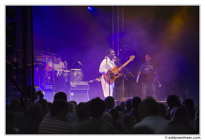 Maar het was duidelijk waar het merendeel van het publiek voor gekozen had: de afsluiter op zondag, Richard Bona’s Mandekan Cubano. Ruim voor aanvang verzamelden zich ruim twee keer zoveel bezoekers voor het podium als bij het tot dan toe best bezochte concert. Bona startte rustig op. Nog zonder al te veel uitspattingen klonken zonnige Cubaanse ritmes en zijn kenmerkende zang. Hij had meteen de dansers op zijn hand, zocht veelvuldig – op het flauwe af - de publieksinteractie en moedigde aan tot nog meer dansen en meezingen. Zijn basspel hield hij initieel wat klein, liet zich zelfs verleiden tot een melige weergave van ‘Smoke on the water’ van Deep Purple en was puur gericht op begeleiding.