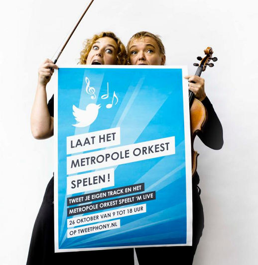 23 okt - Een uniek en ludiek protest van het Metropole Orkest dat door de bezuinigingen in zijn voortbestaan wordt bedreigd: een Twitterconcert. Op vrijdag 26 oktober kan het publiek korte muziekstukken van 140 tekens componeren en twitteren naar het orkest. Deze worden razendsnel gearrangeerd en omgezet in een Metropole Tweetphony.