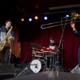 In openingsnummer 'Fiets' maakten de heren hun handelsmerk meteen waar. Drummer Sebastian Winne zette met een patroon van zestienden op de hi-hat, een harde basdrum en gesyncopeerde klappen op de snaretrommel een stevige beat neer. Tenorsaxofonist Lutz Streun en trombonist Til Schneider speelden om beurten een strakke en groovy lijn. Wanneer de een soleerde schoof de ander na verloop van tijd zijn begeleidende partij in de solo en nam die over. Een mooi spelletje, dat er makkelijker uit zag dan het daadwerkelijk moet zijn.