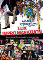 De Impro Marathon wordt gehouden op zondag 27 januari van 15.30 tot 23.00 uur in arthouse LUX te Nijmegen. Kaarten á 20 euro zijn te koop via LUX: 0900 5894636.