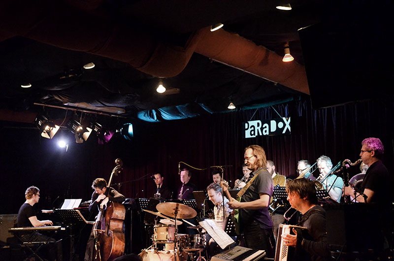 Het Vlaamse ensemble Flath Earth Society met Berlinde Deman, Peter Vermeersch en de blazers Stefaan Blancke en Marc Meeuwissen maakte zijn opwachting in Paradox.