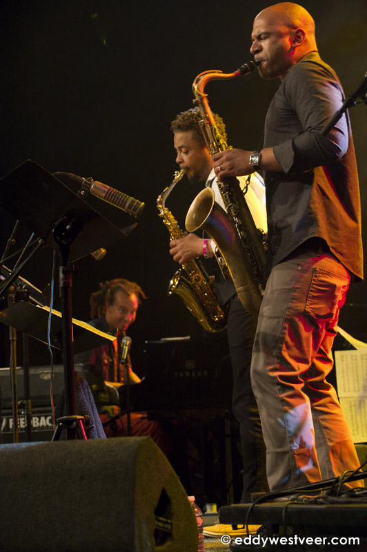 Robert Glasper. Branford Marsalis Quintet. Sting op het podium met Branford Marsalis.