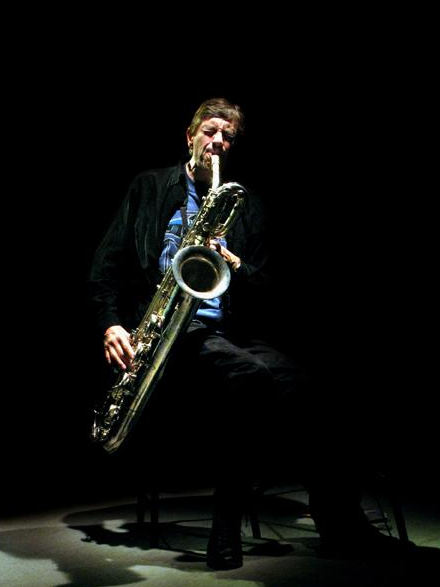 De Franse baritonsaxofonist Daunik Lazro geeft een soloconcert tijdens de ZomerJazzFietsTour. Foto © Christine Baudillon.