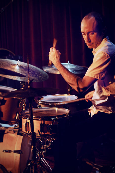 Geinig waren de ‘adempauzes’ – zoals Rastegar die noemde – van hooguit een minuut waarin een oprispend idee dat zijn uitwerking nog moest krijgen, in de vorm van een grappige groove snoeihard de zaal in werd gesmeten.