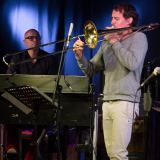 Het Nostalgia Trio van trombonist Nils Wogram met Arno Krijger achter de hammond en slagwerker Dejan Terzic.