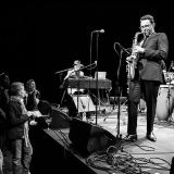 Van Wijck kleurde initieel subtiel. Zijn eigen werk kenmerkte zich daarna door complexe ritmiek en dito accenten en stops. Botter en hoekiger dan Evers’ werk hoewel die laatste, als afsluiter van het concert, uit zijn trilogie dan weer een knallende groove naar voren bracht. Buiten je comfortzone dus. Daar had de een het wat makkelijker mee dan de ander. Joris Roelofs voelde zich duidelijk op zijn gemak. Kleurde en dikte aan en soleerde bij tijd en wijle emotioneel en vooral extatisch.