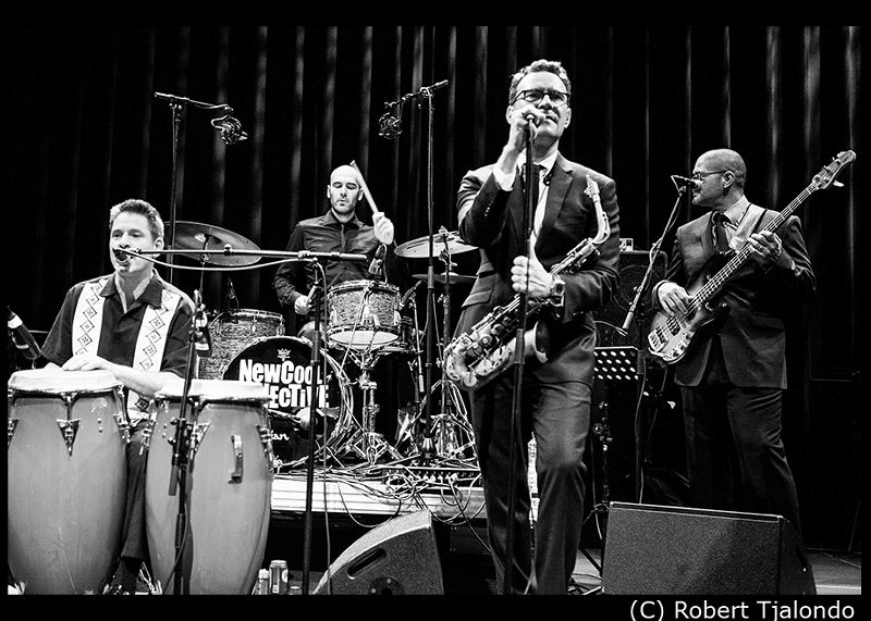 Afsluiter van de avond was New Cool Collective. Met materiaal van het nieuwste album ‘Chin Chin’ maar ook uit het overige, uitgebreide oeuvre. Ze begonnen in hoog tempo, strak en meteen met wervelende solo’s van de blazers en van gitarist Rory Ronde. In het tweede deel van de set vergezelde de Senegalese koraspeler Ali Boulo Santo de heren. Het tempo ging even wat omlaag bij de stukken van Boulo Santo.