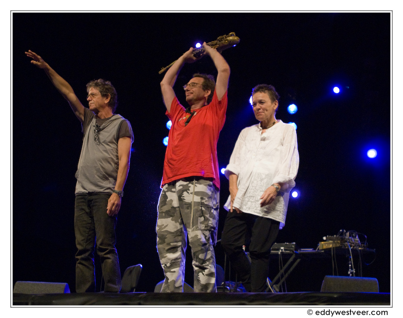 Lou Reed, John Zorn en Laurie Anderson op het podium van