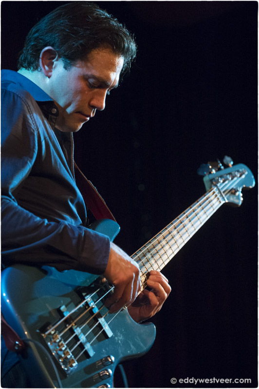 Basgitarist Jeroen Vierdag (The Ploctones). The Monochrome met Bart van Dongen, Bart Maris, Jeroen Doomernik en Richard van Kruysdijk. Jeroen Doomernik.