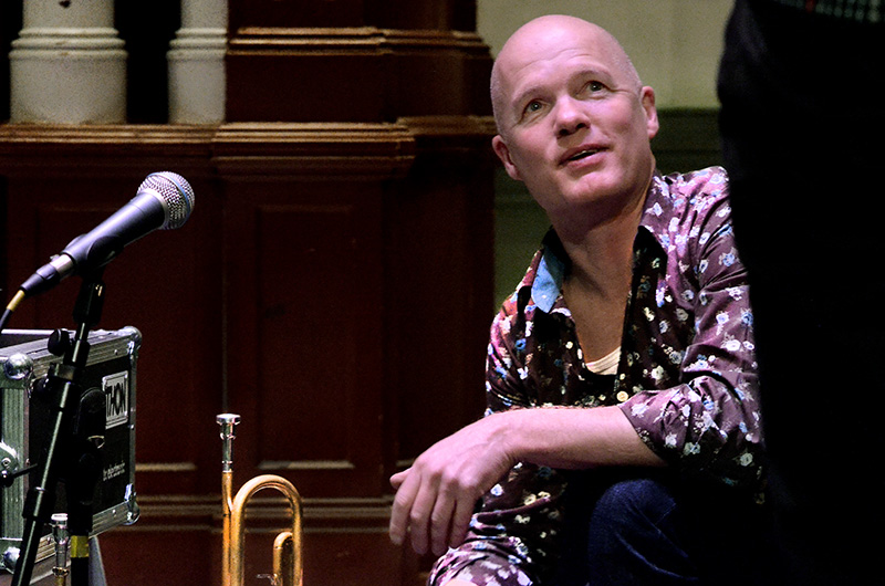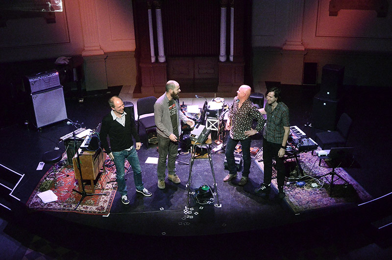 Langzame muziek, dat werd het. In vijf kwartier ontrolde zich in een behaaglijke traagheid een grotendeels geïmproviseerde compositie, die werd gedragen door vooral elektronica. Maar ook door twee trompetten, een flugelhorn, harmonium, melodica en zelfs een menselijke stem. Dit alles werd bespeeld door de trompettisten Bart Maris en Jeroen Doomernik, toetsenist Bart van Dongen en elektronicaspecialist Richard van Kruysdijk. Het concert speelde zich af in het vrijwel duister.