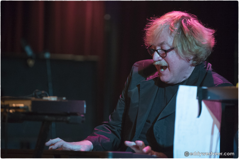 Duo Jasper van 't Hof/Han Bennink, gitarist Anton Goudsmit, contrabassist Niko Langenhuijsen achter de piano.