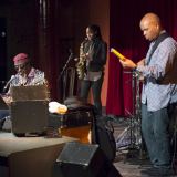Veteraan James Blood Ulmer met de jonge saxofoniste Lakecia Benjamin en basgitarist Mark Peterson.