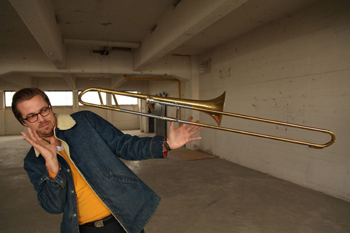 “Ik kan me herinneren dat ik, toen ik drie was, al mijn eigen drumkit had. Zelfgebouwd natuurlijk.” Louk Boudesteijn vertelt dat vanaf zijn vierde de trompet in beeld kwam. Kort daarna kreeg hij een trombone van zijn tante, een erfstuk. “Ik heb toen wel op een blauwe maandag les gehad op de muziekschool, voor de trombone, maar dat sloot niet helemaal bij me aan. Die verplichte stukken spelen. Mijn vader heeft vroeger tuba gespeeld, dus hij leerde me al heel vroeg hoe ik de ventielen moest gebruiken.”