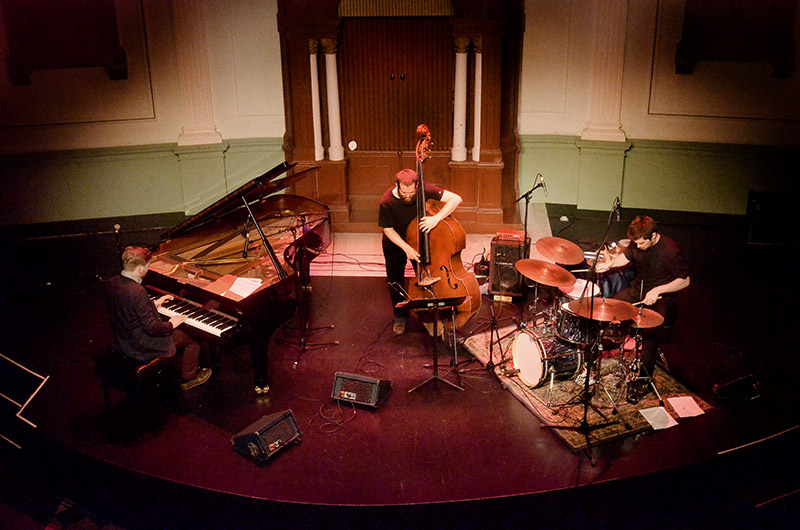 Het trio van pianist Pablo Held ging wat betreft opzet nog een stapje verder dan het Red Hill Orchestra. De leider, met aan zijn zijde contrabassist Robert Landfermann en slagwerker Jonas Burgwinkel begon, ook in De Toonzaal, onvoorbereid aan zijn concert. Bewust onvoorbereid, want de drie wilden geen afspraken omtrent aanpak, welke stukken er gespeeld zouden worden, waar solo’s werden ingebouwd en ga zo maar door. Het was zitten en spelen.