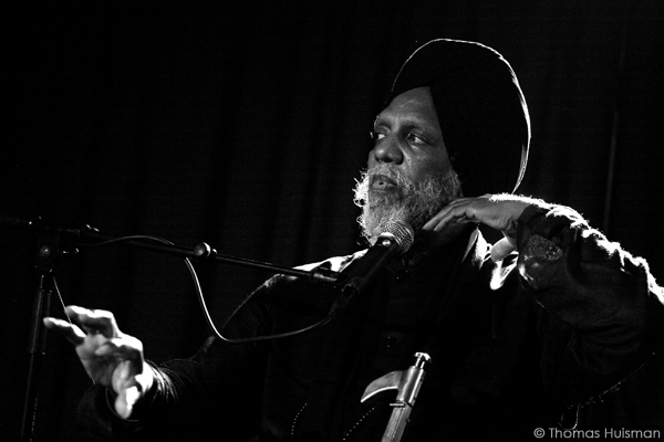 Enige stijfheid lag misschien ook in de verwachting bij het concert van de inmiddels 73-jarige Pharoah Sanders, die Harrell opvolgde in diezelfde Hudsonzaal. Die verwachting werd meteen aan banden gelegd toen de tenorsaxlegende in een glitterjasje, hoed en zonnebril het podium betrad. En hoewel hij licht gebogen en strompelend heen en weer liep, vermaakte en verraste hij het publiek tussen neus en lippen door: al dansend zakte hij door zijn knieën tot aan de grond. Sanders had het duidelijk naar zijn zin en zijn geluid en improvisaties klonken nog net zo emotioneel geladen als op de platen uit zijn hoogtijdagen, eind jaren zestig.