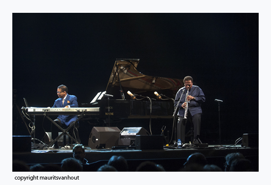 Duoconcert Herbie Hancock en Wayne Shorter. Soloconcert Jozef Dumoulin op het podium van Club Stage (foto © Bruno Bollaert).
