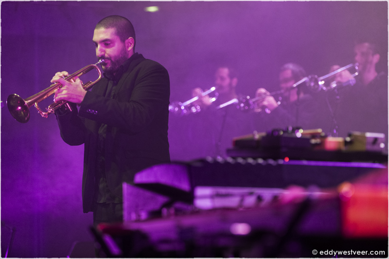De Libanese trompettist Ibrahim Maalouf zweepte tot grote hoogten op met zijn uitbundige, Arabisch getinte muziek. Samen met een blazerssectie leek hij op een Arabische voorzanger die afwisselend met zijn koor een feestelijk optreden verzorgde voor een swingend publiek. Hij gaf zijn medemuzikanten veel ruimte voor uitbundige solo’s voor een enthousiaste en propvolle zaal.