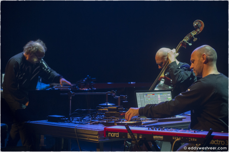 De grote zaal werd daarna door jazzlegende Bugge Wesseltoft samen met technopionier Hendrik Schwarz ondergedompeld in magisch, hypnotiserend, vibrerend, steeds verder evoluerend geluid. Dan Berglund legde met zijn vaak gestreken bas een stevig fundament voor de klanken van Schwarz en voor de improvisaties vol inventiviteit en vrijheid van Bugge Wesseltoft op vleugel, Fender Rhodes en synthesizer.