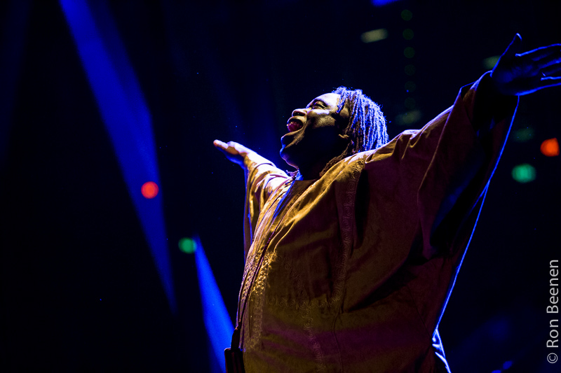 Mola Sylla van het trio Reijseger-Fraanje-Sylla, te zien op