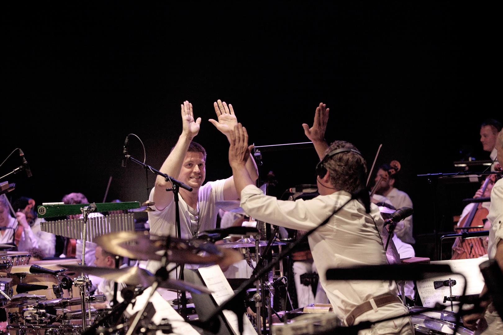 Lof ging ook uit naar dirigent Jules Buckley, wiens leiding over het grote ensemble herhaaldelijk door Michael League werd geprezen. Met schijnbare nonchalance gaf hij nu eens aanwijzingen en legde hij dan weer de ontwikkeling van de snelle, monumentale muziek in de handen van haar uitvoerders. Dat die deze verantwoordelijkheid zonder problemen aankonden, bewezen vooral de twee laatste stukken: ‘Lingus’ werd in het grote orkestarrangement nog spectaculairder en de toegift, ‘Shofukan’ (beide van het album ‘We Like It Here’), zette de hele Rotterdamse Schouwburg aan tot het meezingen van de aanstekelijke melodie.