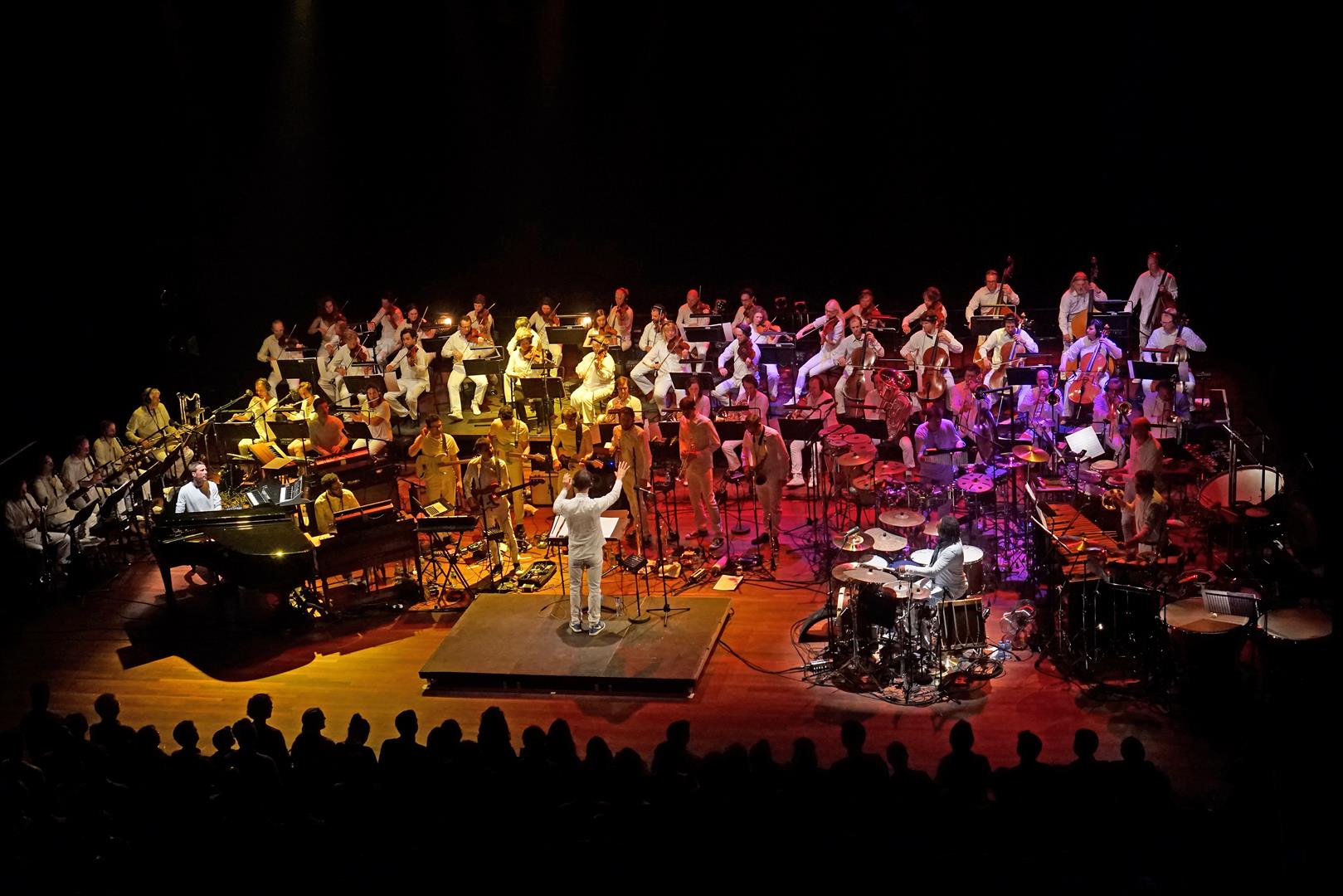 Metropole Orkest onder leiding van Jules Buckley en Snarky Puppy met bandleider en basgitarist Michael Leage.