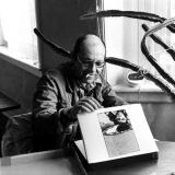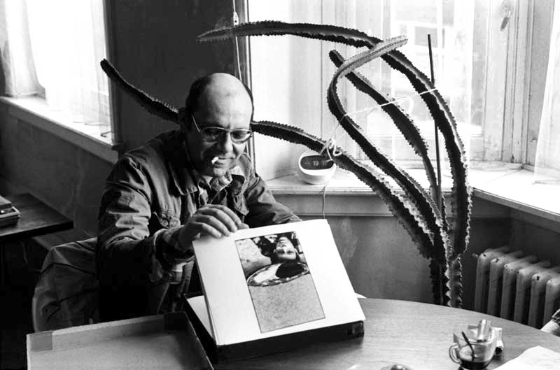 Misha Mengelberg bekijkt in 1978 een stapel afdrukken van de Italiaanse fotograaf Roberto Masotti. Foto © Roberto Masotti.
