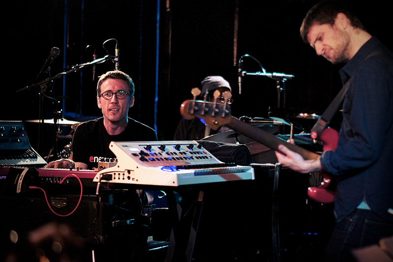 Bill Laurance, Michael League en Robert 'Sput' Searight met het West Side Trio en hoornist Katie Christie in de Paradox in Tilburg.