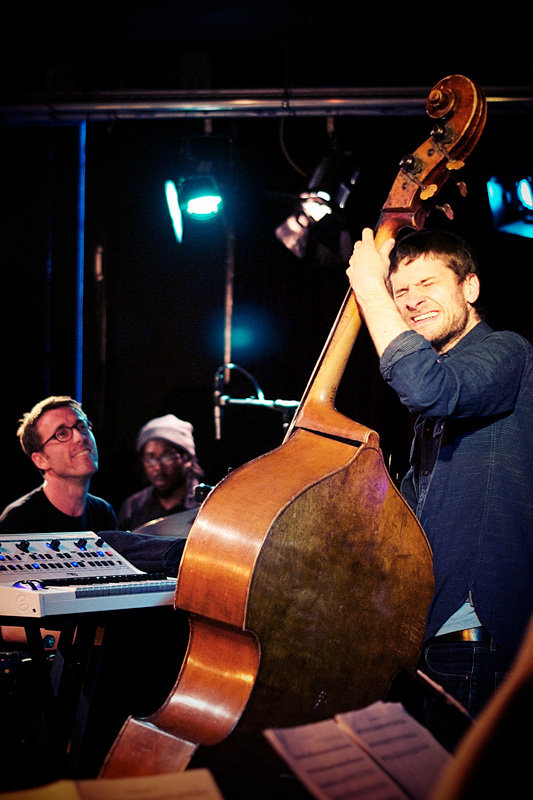 De drie strijkers (viool, altviool en cello) en de zangerige hoorn van Christie brachten nadien vele lagen aan in de feestelijk swingende arrangementen. Waarbij de ritmische invloeden uit de jazzfunk, progressieve rock en fusion dankzij het klassieke kwartet zo nu en dan werden opgesierd met elementen uit de ambient en klezmer. Een fraai spektakel waarbij het energieke collectieve geluid voorop stond.