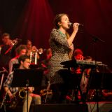In een heel ander register maar eveneens met groot orkest was het concert van de Amerikaanse Sara McDonald met de Big Band der Hochschule für Musik und Tanz uit Keulen, versterkt met een strijkerskwartet. McDonald pendelt tussen pop, jazz en rock met een visie waarvan ze de grondbeginselen leerde bij Peter Eldridge en Theo Bleckman. Een kruising tussen Flat Earth Society en Spike Jones met stijlvormen uit de musical en de traditionele bigband. Het samengestelde ensemble bracht meer dan enkel popliedjes getransponeerd naar de wereld van grote bezettingen.