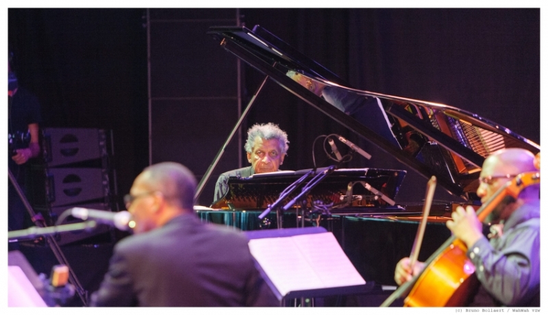De Zuid-Afrikaanse pianogrootmeester Abdullah Ibrahim, ontdekt door Duke Ellington, vertegenwoordigde het andere uiterste van het spectrum. Plaatsnemend achter de vleugel richtte hij zich rechtstreeks op de emoties van het publiek met muziek van onvervalste, bedrieglijk simpele en ontroerende schoonheid. Met de verstilling van zijn melodieën greep hij het publiek zo volledig dat het leek of hier een spirituele hoogmis werd gevierd van puurheid, harmonie en ontroering. Vertolkt in een schitterende muzikale taal. Woorden waren overbodig in dit muzikale universum.