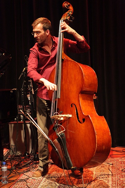Bassist Sven Happel (Vinnie Vibes). Rogier Telderman Trio met bassist Guus Bakker en drummer Tuur Moens.
