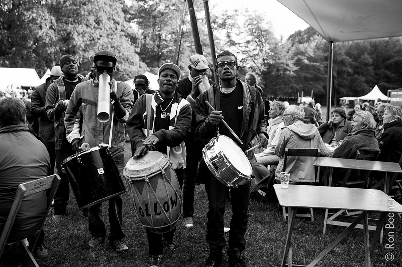 Voor een onverwacht humoristisch element zorgt het Haïtiaanse looporkest Bande à Pied Follow Jah, dat naast de nodige trommels ook op zelfgebouwde blaasinstrumenten speelt. Een aantal musici blazen op lange toeters die nog het meest lijken op de bekende Zuid-Afrikaanse vuvuzela’s. Het orkestje beweegt zich over het hele festivalterrein en speelt bijzonder aanstekelijk.