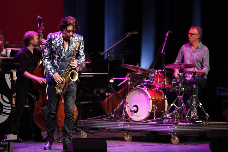 De uitreiking start enigszins verlaat, met het Metropole Orkes onder leiding van Vince Mendoza. Het arrangement van ‘Big Night’ is nogal pompeus, maar de fantastische solo van tenorsaxofonist Jasper Blom vergoedt veel. De eerste winnaar die voor het voetlicht komt, is tenorsaxofonist Yuri Honing met zijn akoestische kwartet, die de prijs voor de tweede keer in ontvangst mag nemen. Kreeg hij ongeveer vijftien jaar eerder de prijs voor zijn album met pianist Paul Bley, nu valt het prachtige ‘Desire’ in de prijzen, zonder meer een van de meeste geslaagde Nederlandse jazzproducties van vorig jaar. Van zijn album speelt Honing ‘Messenger’ en ‘Desire’.