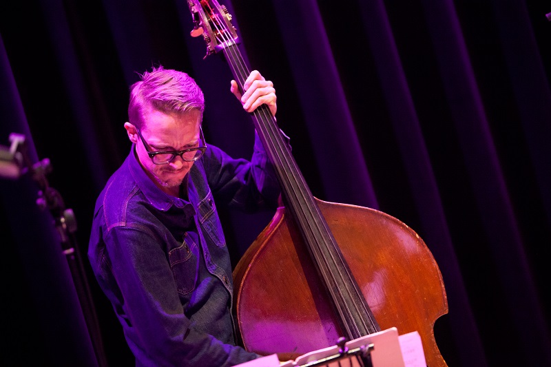 Basklarinettist Josh Shinton en Wooley. Contrabassist Eivind Opsvik.