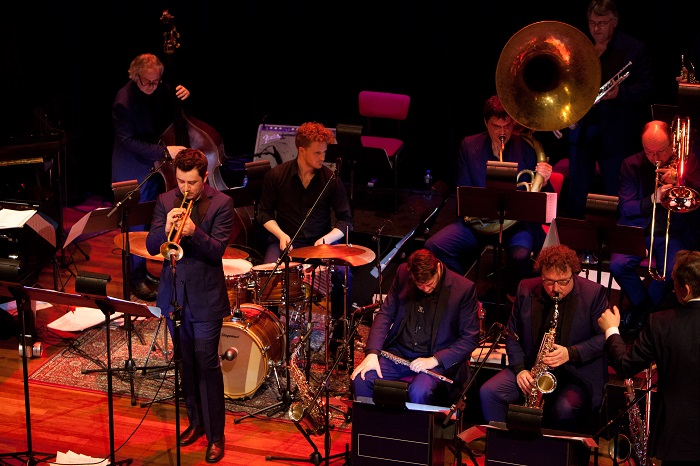 Brussels Jazz Orchestra onder leiding van Ryan Truesdell, met pianiste Nathalie Loriers en trompettist Jeroen van Malderen in TivoliVredenburg.