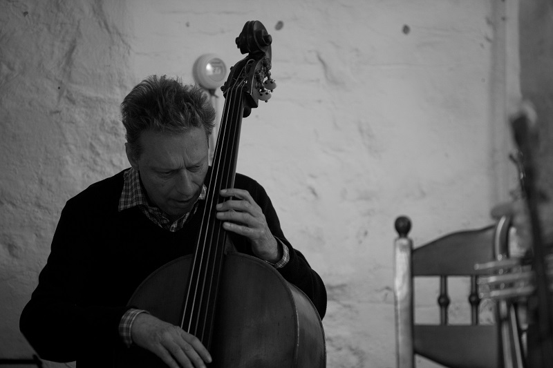 Sessie Rein de Graaff, Ack van Rooijen, Ernst Glerum, Han Bennink. Contrabassist Ernst Glerum.