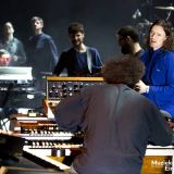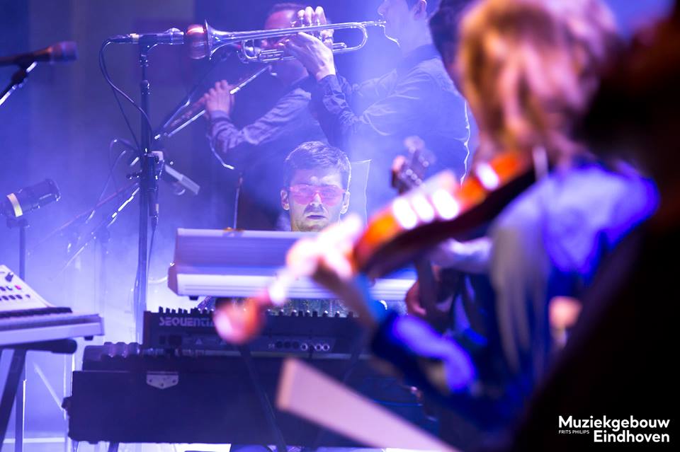 Dubbelconcert Banda Magda (l) en Snarky Puppy met bandleider Michael League in Muziekgebouw Eindhoven.