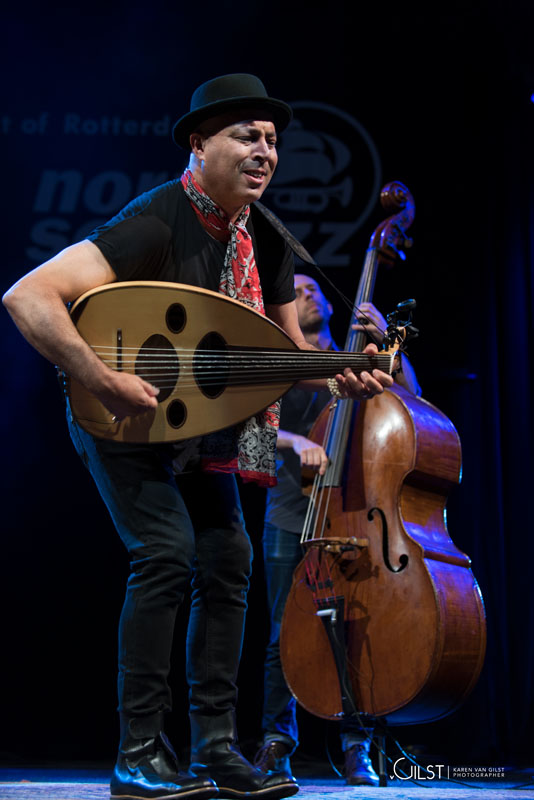Van een geheel andere allure is het programma ‘Diwan Of Beauty And Odd’ van oud-speler en vocalist Dhafer Youssef, die Oost en West bij elkaar brengt in een set waar de emotie soms in ruim biggelende tranen vanaf druipt. Zijn zang is – met de forse uithalen en veel digitale echo – ver over de top, maar wat hij ritmisch doet met zijn oud is muzikale toverkunst. Arabische melodieën combineert hij moeiteloos met jazzritmes en zijn improvisaties zijn zonder meer opzwepend en virtuoos.
