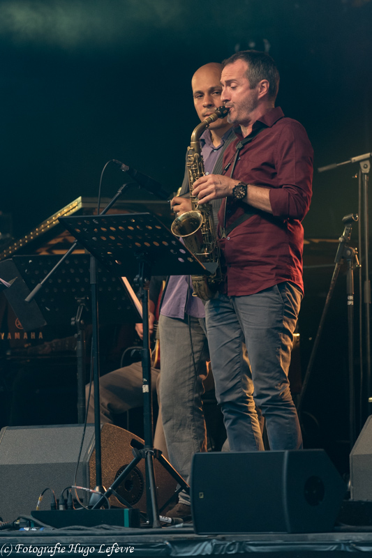 Dat het affiche uiterst gevarieerd was, bewees de aanwezigheid van de Jazz Station Big Band, tegenwoordig onder leiding van Stéphane Mercier. Voor de gelegenheid werd de Zwitserse mondharmonicaspeler Grégoire Maret uitgenodigd. Een geslaagde zet over de hele lijn. De man nam de hele bende op sleeptouw en sloofde zich uit alsof hij voor de eerste keer aan een wedstrijd deelnam. Veel hoge noten, af en toe wat glissando maar vooral een enorme drive. Gedurfd was om al meteen als tweede nummer Toots zijn klassieker ‘Bluesette’ te brengen. Zelfs daar slaagde hij met brio in. Vuurwerk om af te sluiten in pure New Orleans-stijl met een hitsig duet tussen Maret en trompettist Jean-Paul Estiévenart.
