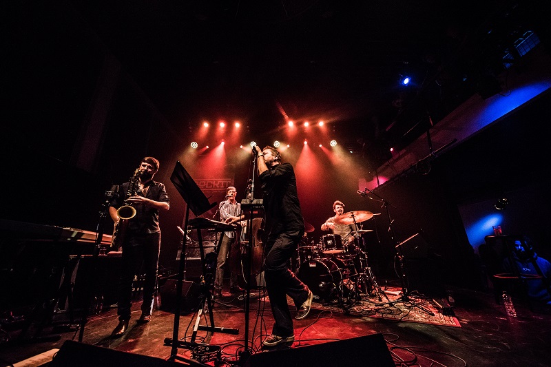 De band BadBadNotGood, zangeres en bassiste Genevieve Artadi van het duo Knower, Ben van Gelder met Reinier Baas.