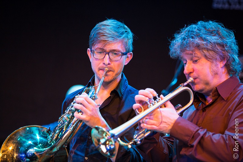 Martin Fondse en de blazers Morris Kliphuis en Eric Vloeimans.
