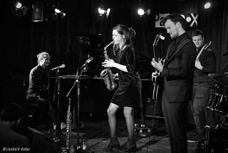 Kika Sprangers (1994) debuteerde vorig jaar met de EP ‘Leaves of Lily’ die ze opnam met kwintet en deels aanvulde met haar Large Ensemble waarmee ze ook een aantal keer te horen is gedurende de Young Vips Tour. In Tilburg trad de saxofoniste op in kwintetbezetting en opende ze haar concert stevig met een op een rock groove gebaseerd nieuw stuk. Sprangers composities zijn compact waarin haar solo’s op alt- en sopraansaxofoon centraal staan. Gedomineerd door een vet geluid, een grondige ritmische basis en een elektronisch sausje stromen de invloeden uit de New Yorkse jazzscene door de composities, al houdt Sprangers zelf de inspiratie bij abstracte kunstwerken uit De Stijl.