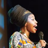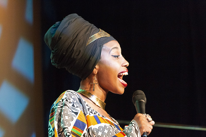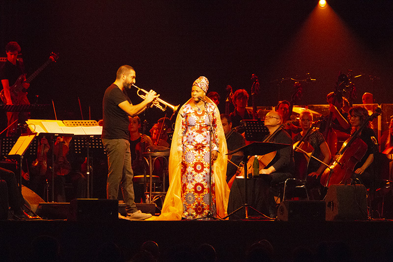 Jazzmeia Horn. Queen of Sheba met Ibrahim Maalouf en Angelique Kidjo. Kika Sprangers (© Ron Beenen).