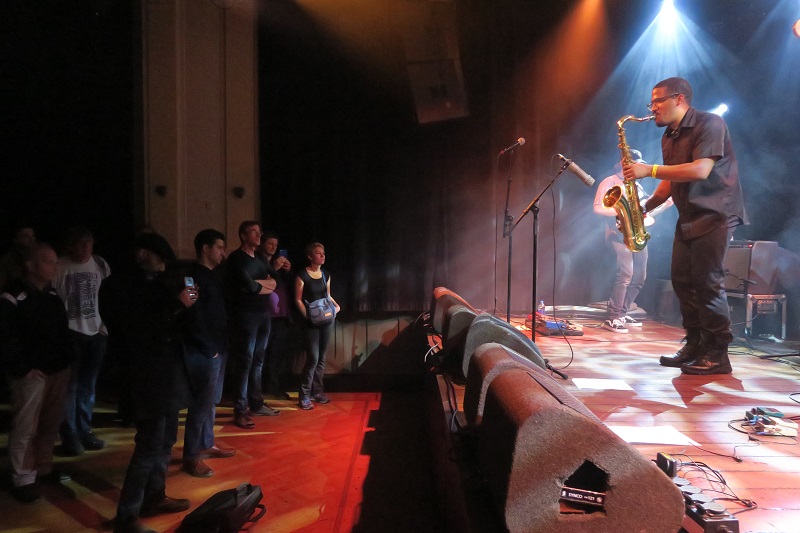 De zaal is meteen geïmponeerd, want hier staat iemand die echt iets te vertellen heeft. Woeste staccato notenreeksen verlaten de beker van zijn tenorsaxofoon, gitarist Pirog speelt agressieve fills, Stewart zorgt voor dominante baslijnen en de perfect getimede klappen van Crudup vormen de superkrachtige motor achter het geheel. De korte composities hebben eerder het karakter van energiestoten dan van conventionele thema’s. De musici spelen op een enorm volume, dat soms tegen de pijngrens aanzit. Hun krachtige en wendbare stijl refereert aan gospel, free jazz, dub, hiphop en hardrock. Ogenschijnlijk simpele motieven worden muzikale bouwwerken, waarvan je je als luisteraar voortdurend afvraagt of ze blijven staan of omvallen.