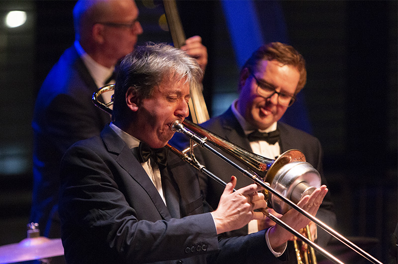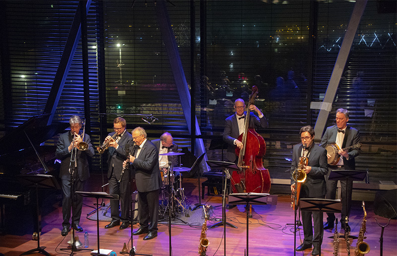 Dat de Dutch Swing College Band in het Amsterdamse jazzbastion optreedt, mag een artistieke revolutie worden genoemd. En passant voert het orkest naast standards ook ‘Who’s Bridge’ en 'Rumboon' van Misha Mengelberg en een stuk van Willem Breuker uit: ‘To Europe’. De arrangementen zijn van Bernard Hunnekink, jarenlang een van de belangrijkste stemmen in het vermaarde Kollektief. Pikant is dat trombonist Andy Bruce, die deel uitmaakte van de laatste lichting van het vernieuwende ensemble, nu een hoofdrol speelt in dit oude stijl orkest.