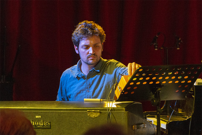 Een andere bijzondere vernieuwer in de Italiaanse jazz is de elektrische gitarist Francesco Diodati. Een knappe verschijning die een geheel eigen stijl heeft ontwikkeld op zijn instrument. In tegenstelling tot veel collega’s zoekt hij zijn kick niet in virtuositeit maar heeft hij een uitgebeende stijl ontwikkeld met een spaarzaam gebruik van effectapparatuur. Zijn solo’s hebben een zekere onvoorspelbaarheid en zitten soms tegen de atonaliteit aan. In tegenstelling tot de meeste fusion bands bevat het ensemble geen ronkende elektrische bassist maar een krachtige tubaïst: Glauco Benedetti. Een one man powerhouse dat de muziek letterlijk aanblaast. Ook het creatieve spel van trompettist Francesco Lento is opvallend: regelmatig gaat hij een dialoog aan met de gitarist. Momenten die kunnen rekenen op de volle aandacht van het aanwezige publiek. Een optreden vol verrassingen waarbij pianist Enrico Zanisi aan het einde ook nog eens terloops verwijst naar de ‘Schilderijententoonstelling’ van Moessorgsky.