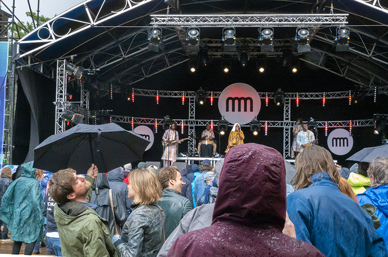 Een steeds terugkerend probleem voor de Nederlandse buitenfestivals zijn de onvoorspelbare weersomstandigheden. De Music Meeting start in guur weer maar op de website staat duidelijk vermeld dat alles doorgaat, ondanks dat elders in Nijmegen al een dance festival is afgelast. Spannend is het allemaal wel terwijl directeur Sanne Grijsen haar inleidende speech houdt midden op het terrein, terwijl de wind giert en temperaturen een herfstachtig niveau hebben.